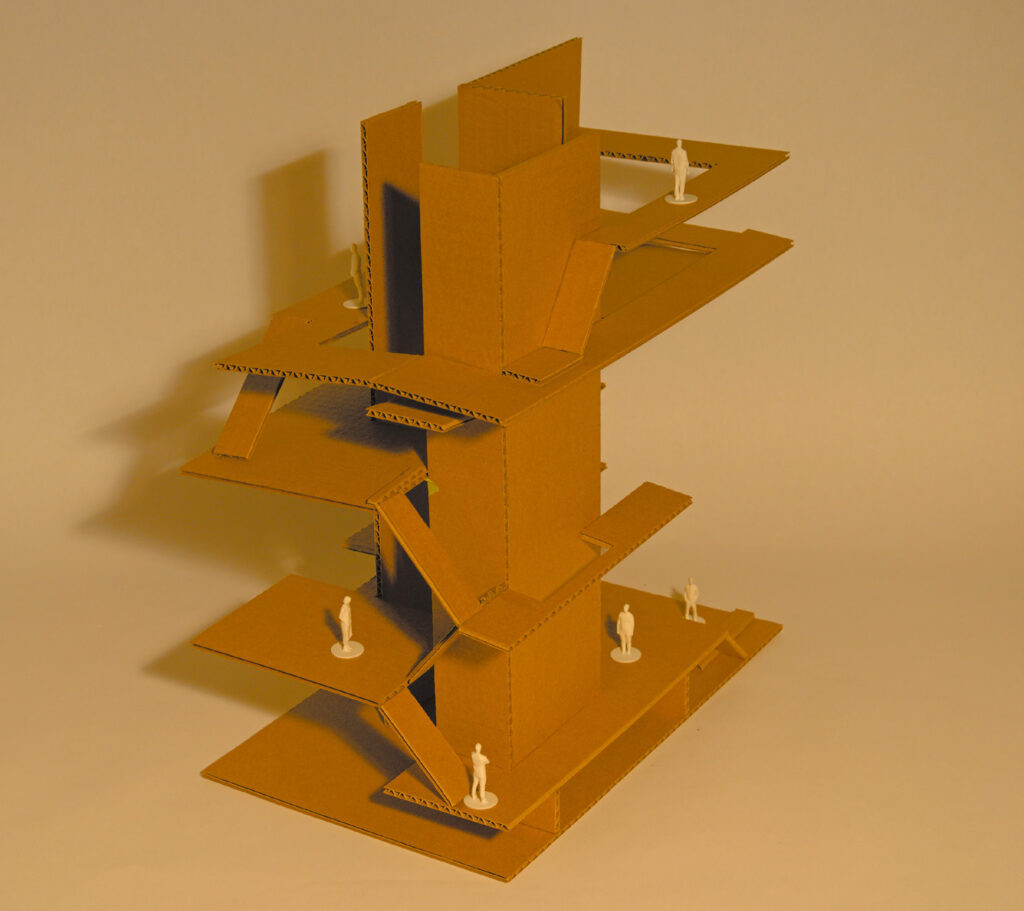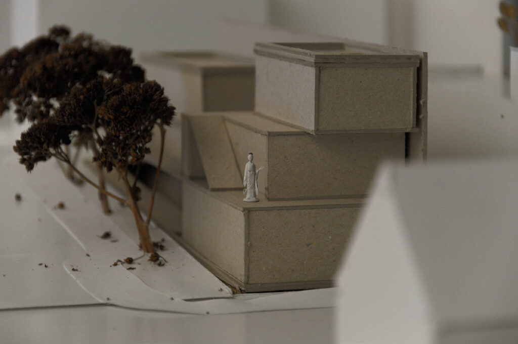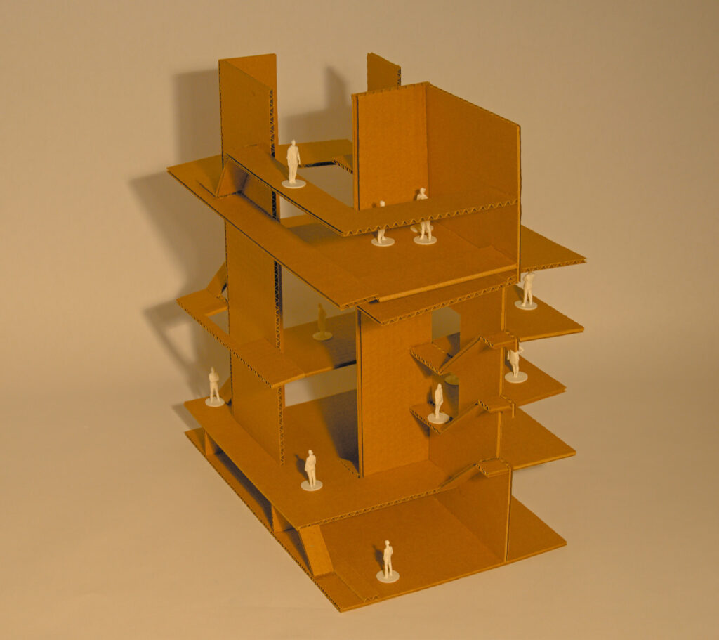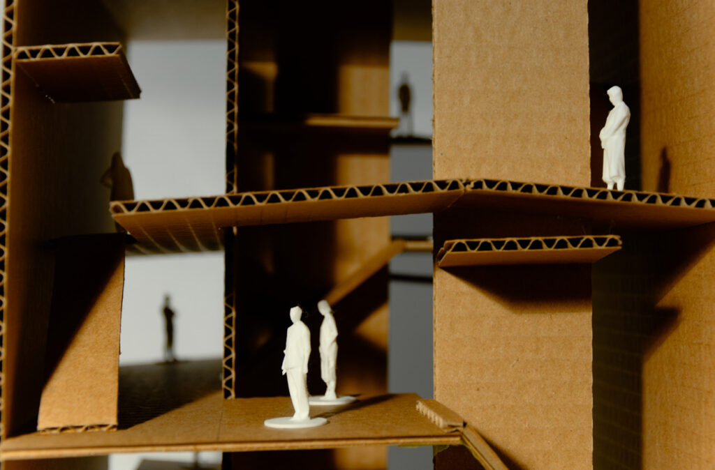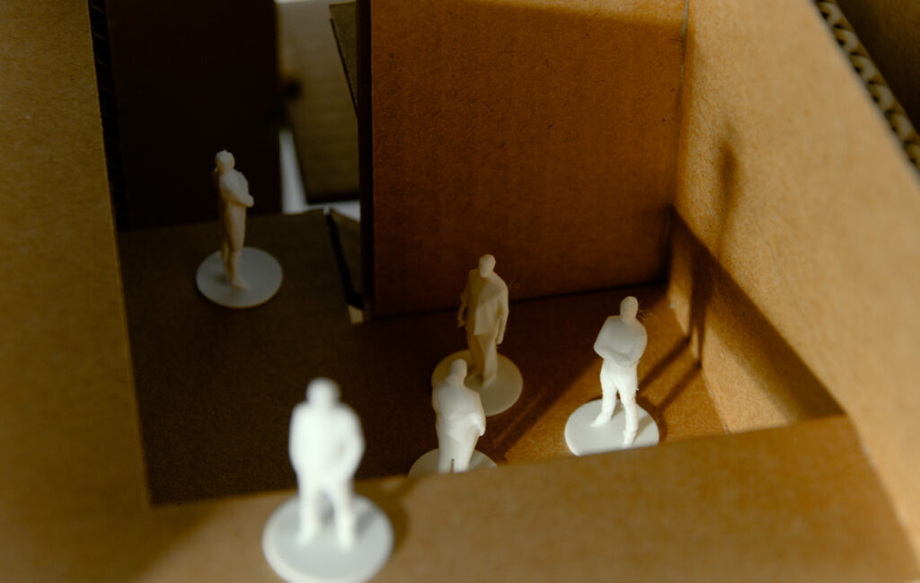It was all about learning how to read lines as potential walls, voids, or circulation paths. My final model was built in cardboard, with 3D-printed figures to test how bodies would move through the space. It was a crash course in how much you can discover by staying analogue.