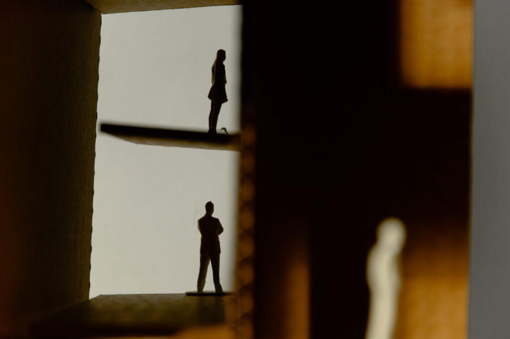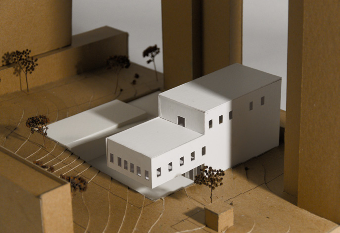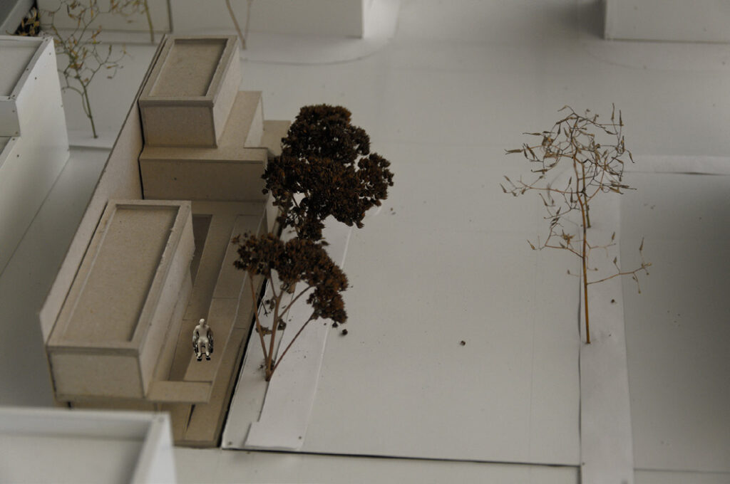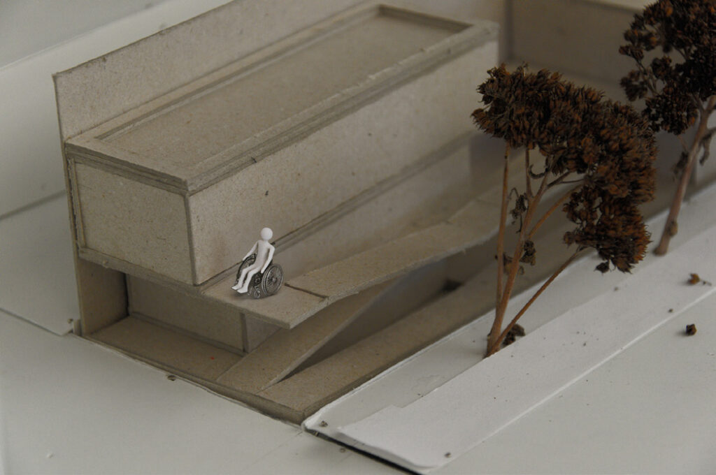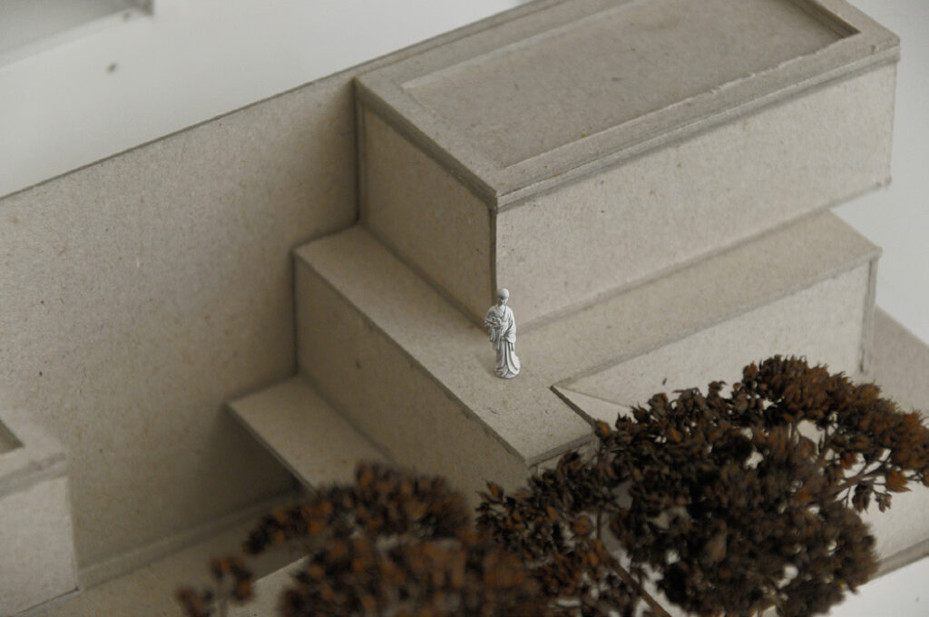 It was all about learning how to read lines as potential walls, voids, or circulation paths. My final model was built in cardboard, with 3D-printed figures to test how bodies would move through the space. It was a crash course in how much you can discover by staying analogue.